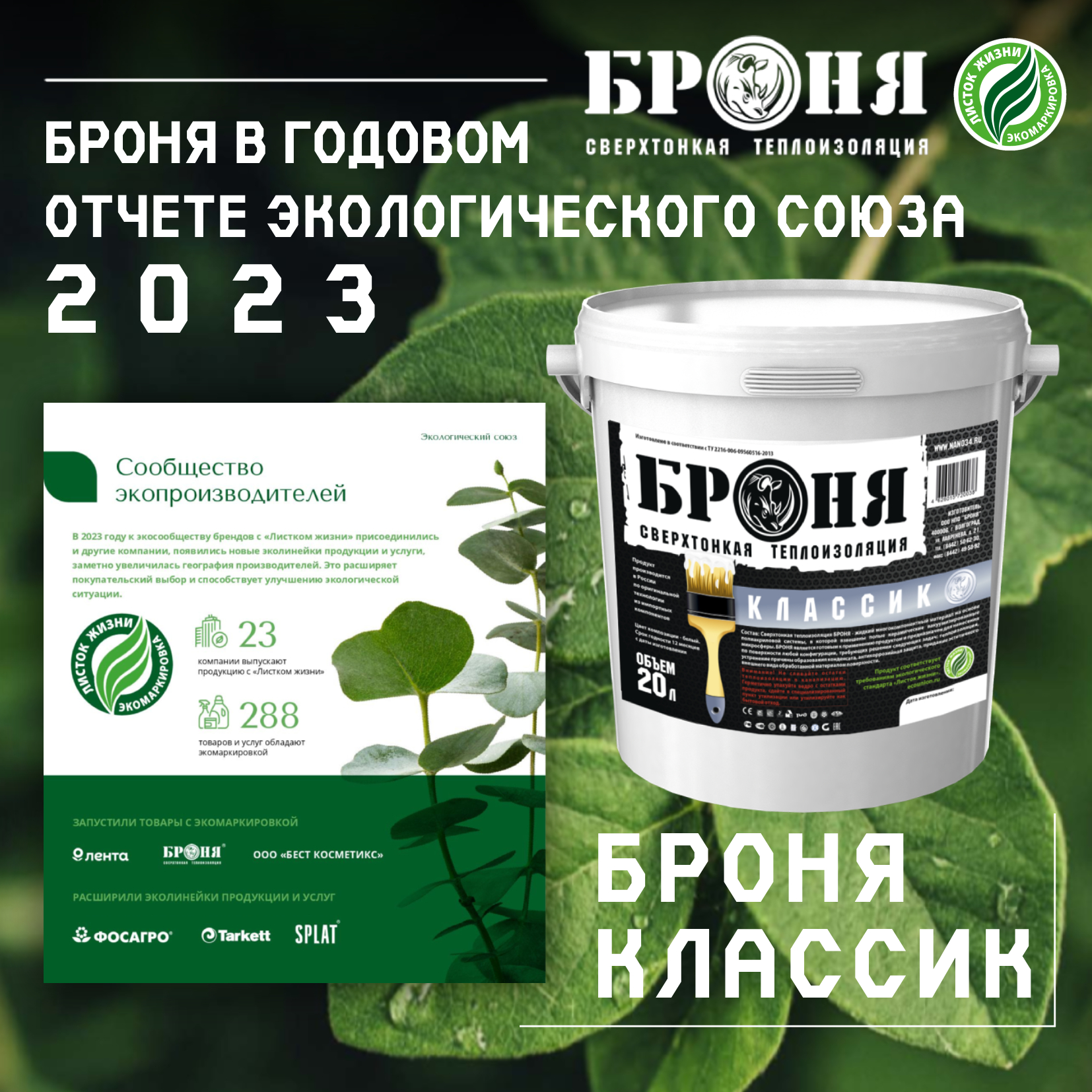 Dear friends! We have great and very interesting news - we remind you that at the end of last year, the environmental certification of our products under the Voluntary Environmental Certification System for products, works and services in their life cycle "Leaf of Life" conducted by an accredited certification body – the Ecological Union (St. Petersburg) was successfully completed. And so, not so long ago, on its portal, the Ecological Union published a report for 2023: the results of the Leaf of Life eco-labeling and eco-education. Our company occupies an honorable place in this report and in the list of those who were awarded the “Leaflet of Life” in 2023.