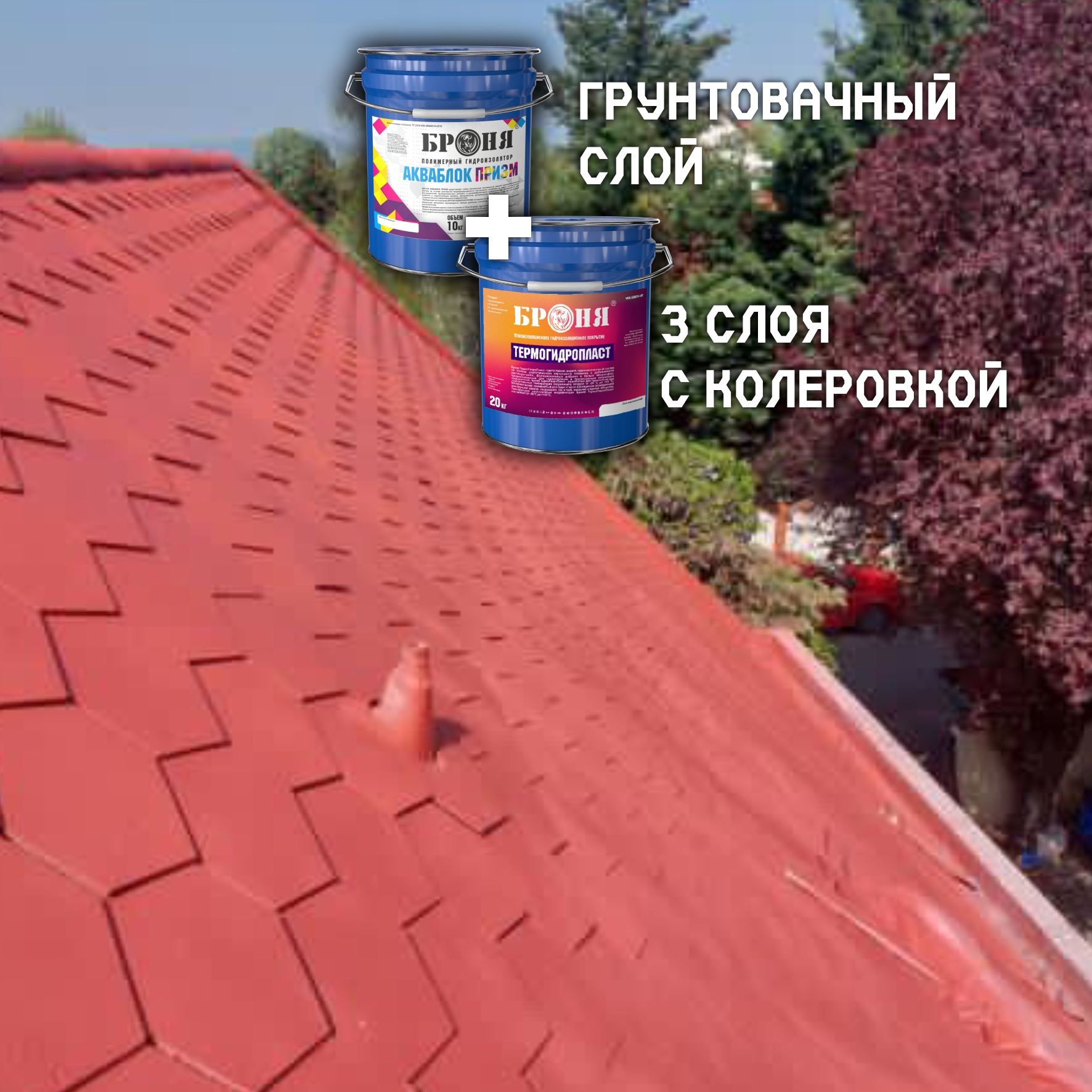 We present to you a comprehensive application of our dual-purpose rubber materials – “Bronya Prizm” and “Bronya TermoGidroPlast” – on the roof of a countryside cottage in Hungary. Several tasks were addressed. The primary, initial goal was to waterproof and eliminate leaks from the shingle roof. Additionally, during the summer, the aim was to significantly reduce air conditioning costs by reflecting solar heat radiation, while preserving warmth inside during the colder months to save on heating expenses. This project was completed in early June 2023, which means it has already endured a full year and nearly two summers.