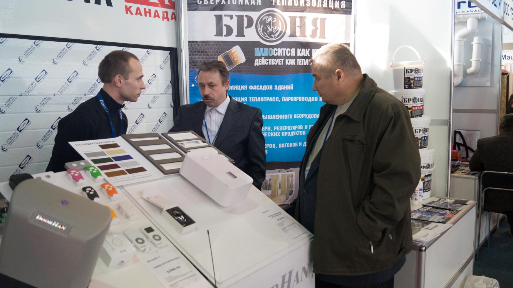 The super-thin thermal insulation material, Bronya, was featured in two ways: a dedicated booth near the entrance to the exhibition hall, where visitors received detailed consultations about products from the VIRC Bronya Group of Companies, and a prominent advertisement on the front cover of the main magazine, 'Construction Industry. Energy Saving.'
