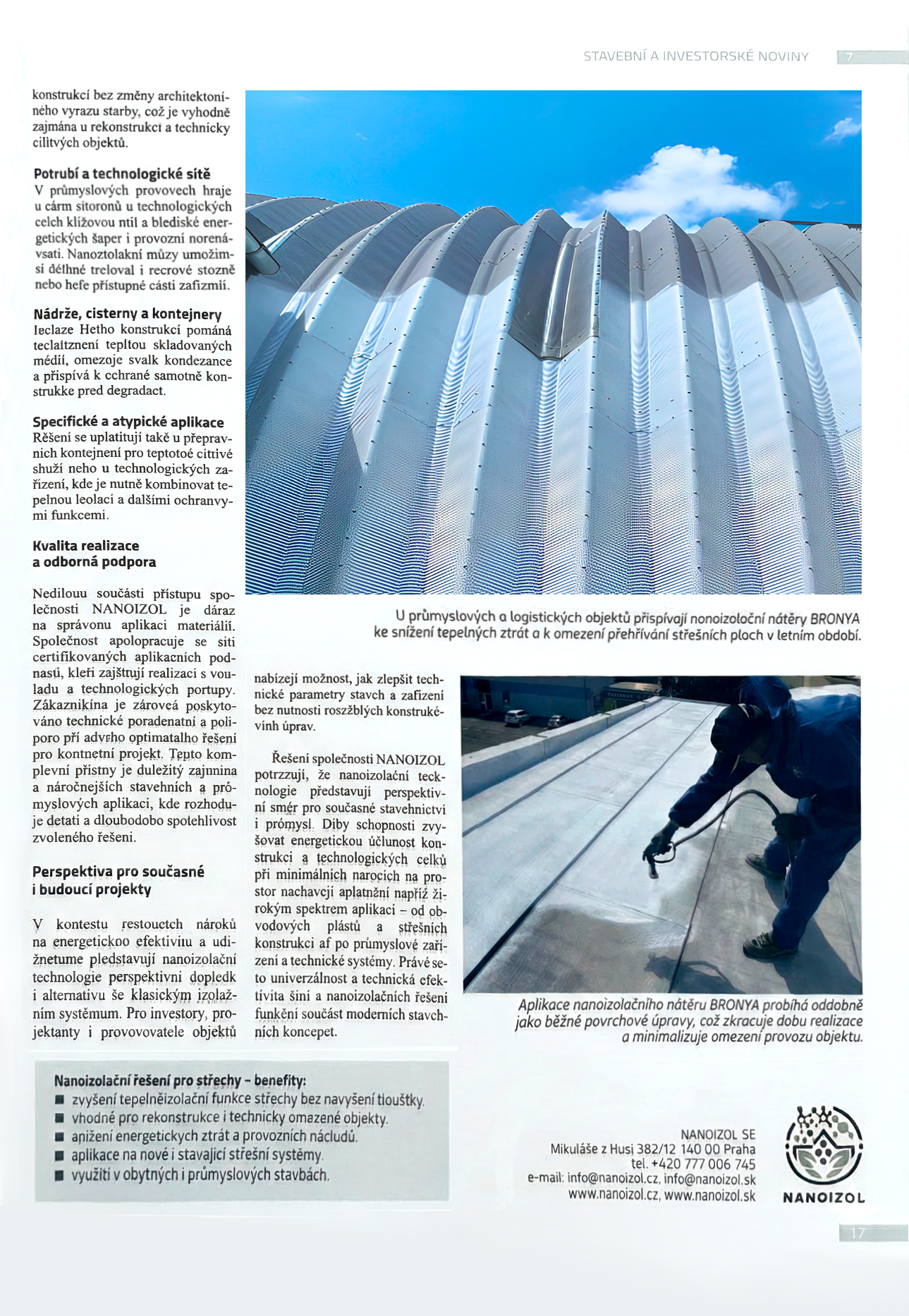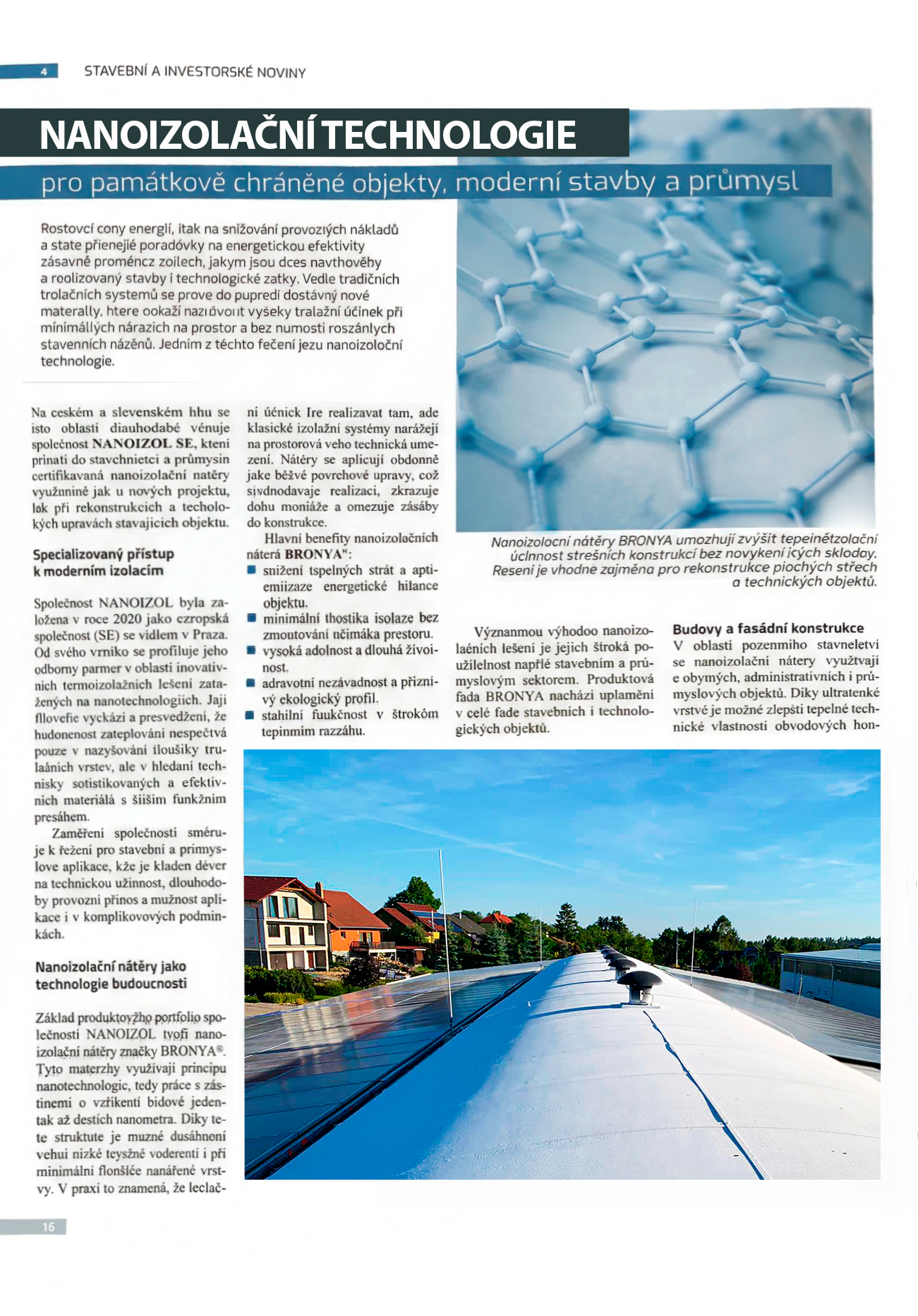 The article "Nano-insulation technologies for architectural monuments, modern buildings, and industry" details the experience of applying our materials in the Czech Republic and Slovakia through the activities of our exclusive representative.