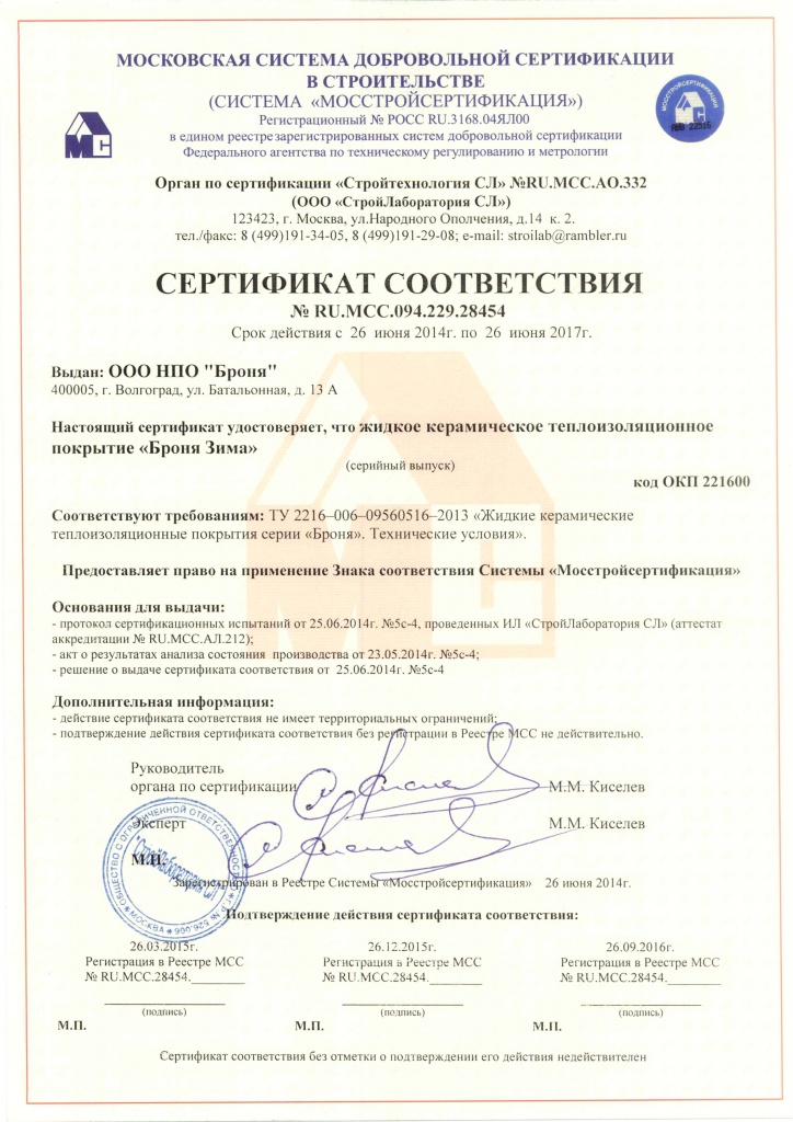 Numerous confirmations of the declared characteristics, extensive certification, and numerous permits provide our partners with advantages in carrying out marketing activities for the implementation of Bronya thermal insulation coatings in all trade clusters.