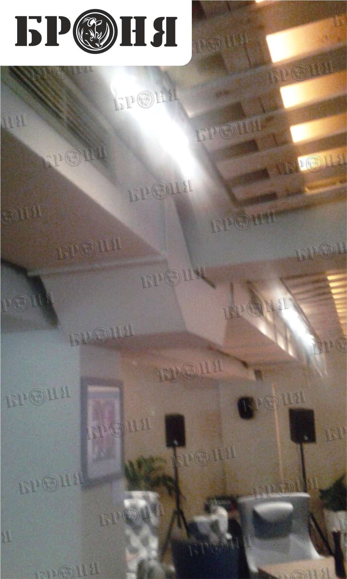 A photo report on the use of Bronya Thermal Insulation on galvanized ventilation boxes in the Nakuchne Restaurant in Almaty has been received. The ventilation boxes were thermally insulated with the Bronya Classic modification before installation, in order to suppress noise and prevent condensation. Two layers of Bronya Classic were applied, the total coating thickness was 1 mm, and 1 layer of water emulsion tinted to match the restaurant design. The interlayer drying time was 24 hours.