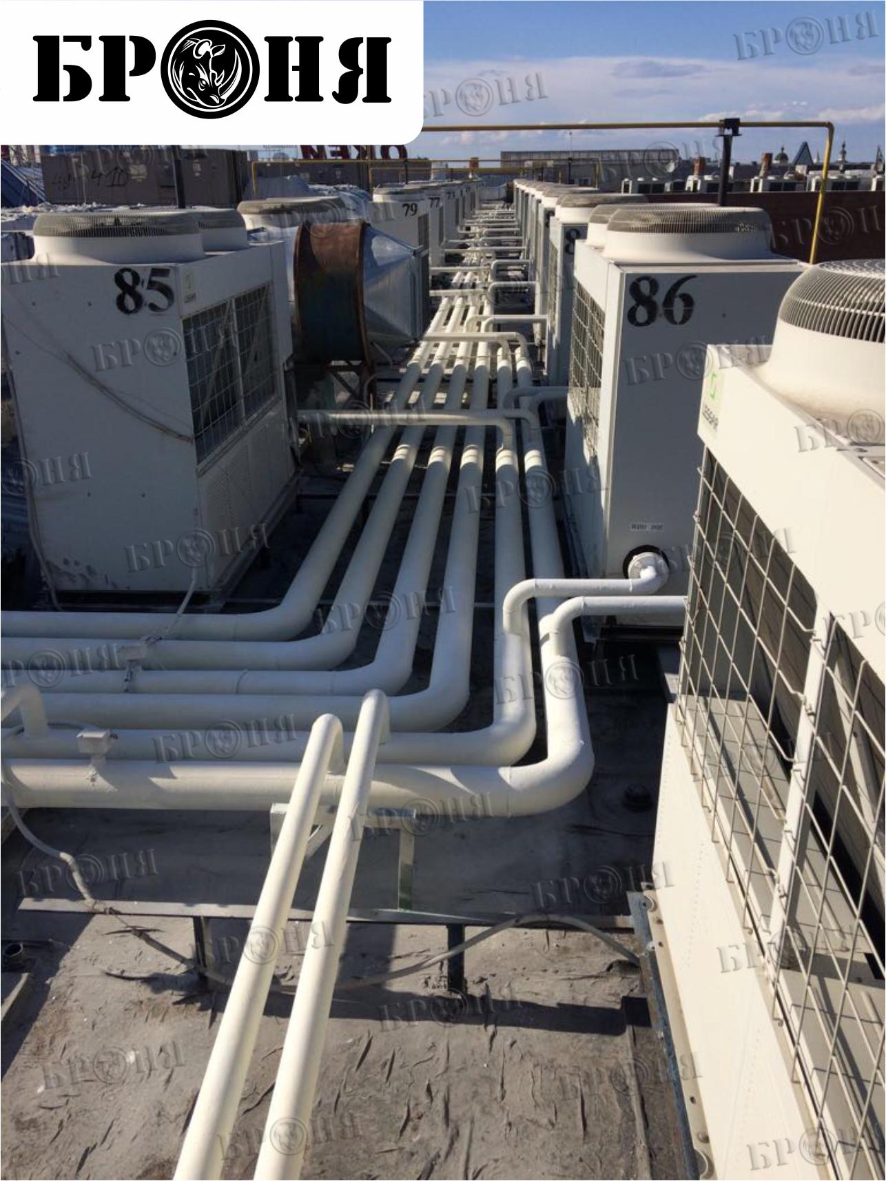 Astrakhan, chiller pipeline of the air conditioning system at the "Alimpic" shopping center