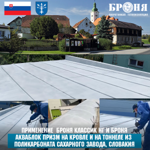 Application of "Bronya Classic NF" and "Bronya AquaBlock Prism" on the Roof and Polycarbonate Tunnel of the Sugar Factory in Dubnica nad Váhom, Slovakia (photos and video)