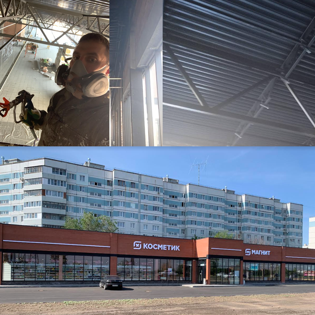 Application of Bronya Fire Protection on Metal Structures of Magnit and Magnit Cosmetic Stores in Samara (Photos, Video)