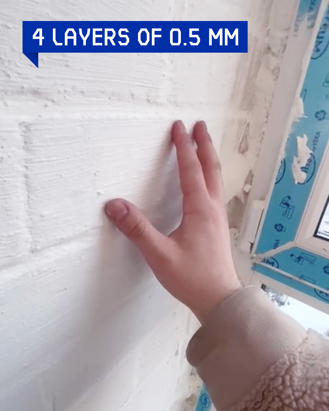The limited space of the loggia did not allow it to be sheltered by traditional materials, so for this purpose the Bronya Facade was chosen. Applied in layers of 0.5 mm. The common layer was 2 mm. The Bronya Facade was applied to the floor, ceiling and walls around the perimeter.