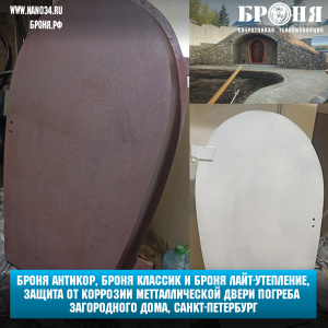 Bronya Antirust, Bronya Classic and Bronya Light for insulation and corrosion protection of a metal door for a cellar in a country house, St. Petersburg (photo)