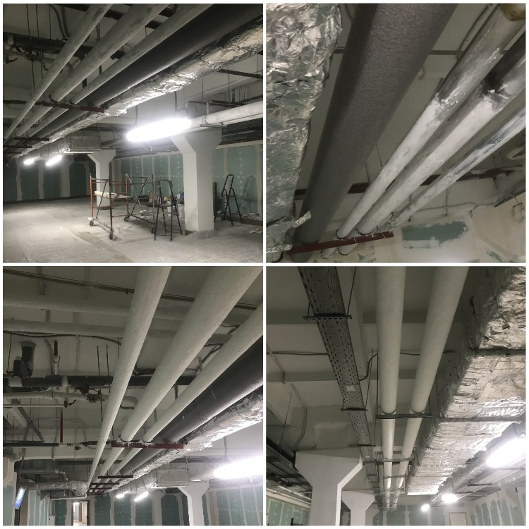 At this facility, the customer planned to equip a yoga and practice room in the basement. The ceiling is a bowl of a hot pool and hot water pipelines run along the ceiling. Taking into account the specifics of the task, it was decided to insulate the ceiling and pipes using Bronya materials, thereby achieving the desired result without reducing the space of the room, and, in addition, save money on energy costs.