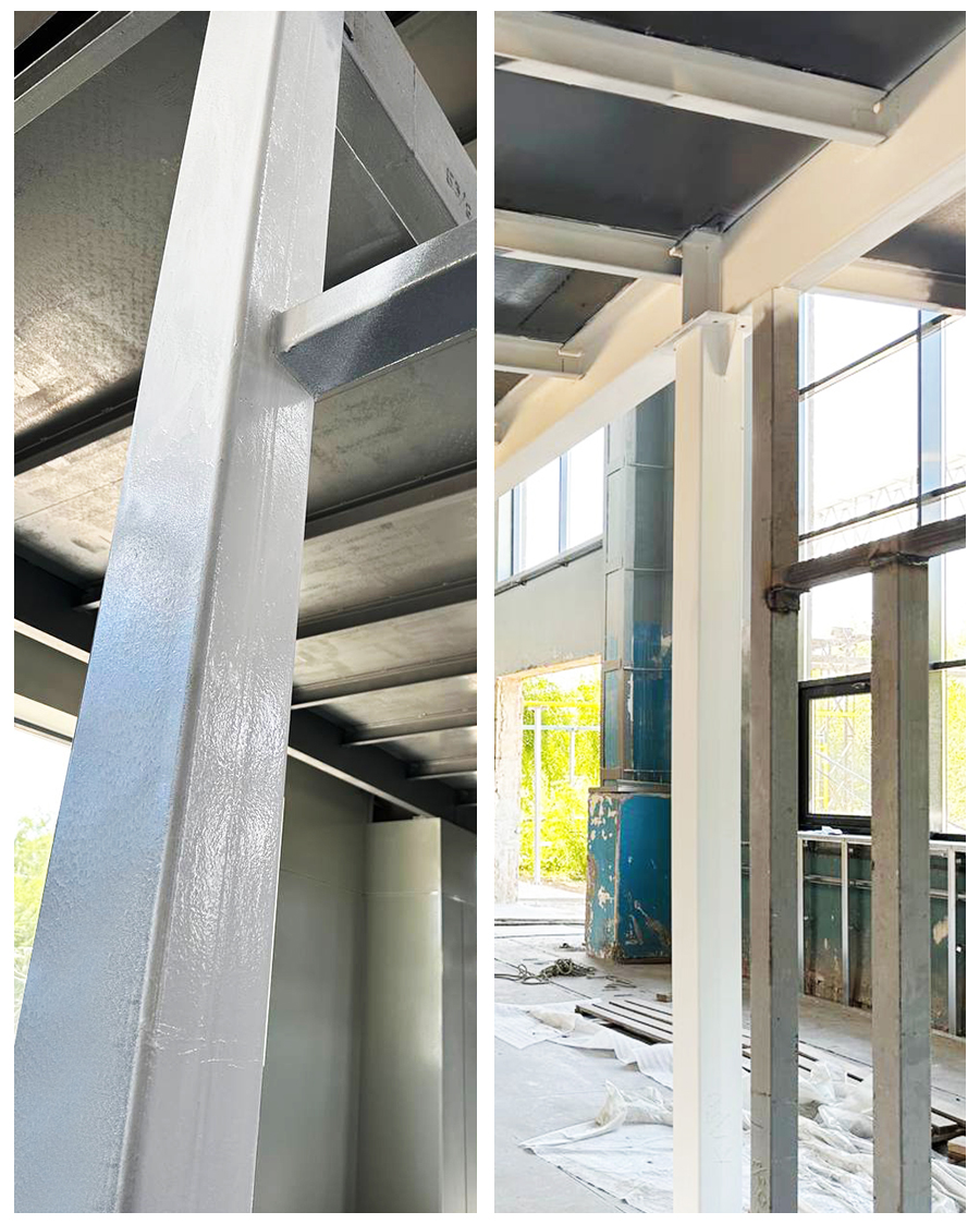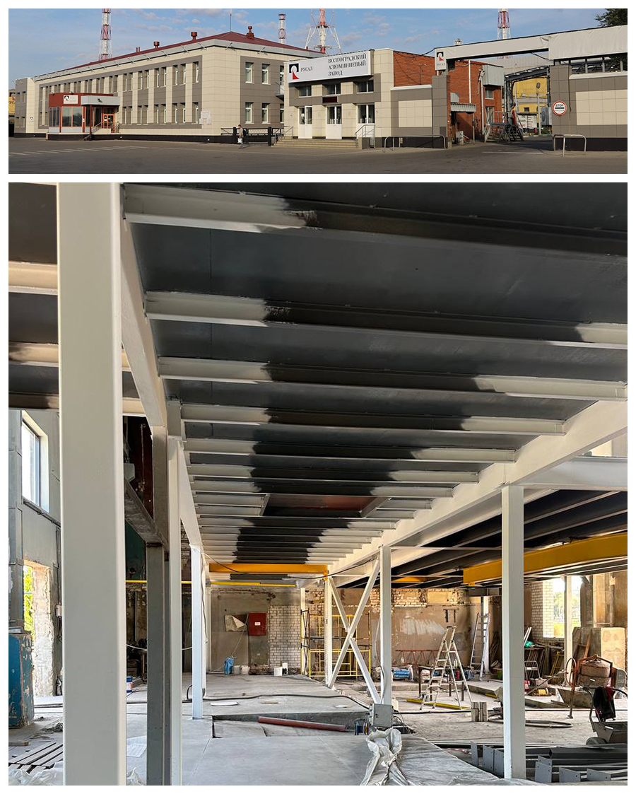Colleagues, friends! We present to your attention a cool and important project that has added to our portfolio of fire protection for metal structures, and this project is also special and important because it is a large industrial facility, geographically located less than a kilometer from our factory. This time, our fire protection material Bronya Fire Protection was applied at the Volgograd Aluminum Plant RUSAL, specifically on the metal structures of new production facilities. A tender was held for both the supply and the execution of work with our material. The material was applied both manually and mechanically. Bronya Fire Protection, which has 120-minute certification, as well as constructive fire protection, which has 180-240 minute certification, is increasingly found in the projects of renowned holdings in our country.