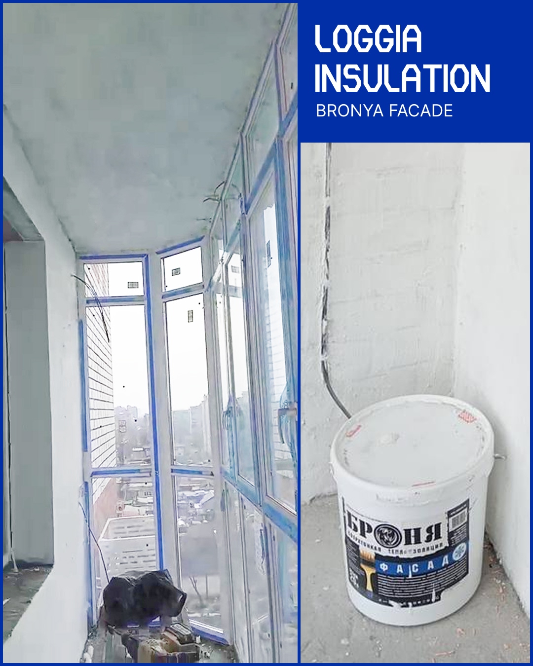 The owner faced the problem of cold walls and chose Bronya Facade to solve this issue. The material was applied in layers with a brush (0.5 mm per layer) up to a total thickness of 2 mm on the ceiling and walls.