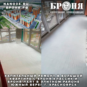 Good afternoon friends! We present you a photo and video report from our dealer Bronya Krasnoyarsk. This time, our materials were used in the overhaul of two large loggias of an apartment in the elite residential district of South Beach. The customer installs underfloor heating throughout the entire floor area of the loggias. After consulting with the dealer, in order to reduce heat loss and preserve the useful area of the room, it was decided to use thermal insulation Bronya Classic and Bronya Light. Our film-forming thermal insulation Bronya Classic 1.5 mm thick was applied to the floor with the first layer, then the thermal insulation putty Bronya Light 1.5 mm thick was applied, the application was carried out with a paint brush with mandatory interlayer drying for 24 hours. Now heat loss during underfloor heating is excluded, in the cold season the apartment will be warm and cozy, and energy costs will be significantly less. The customer was satisfied. # Thank you all!