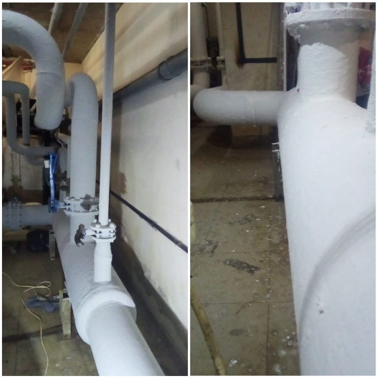 The application was carried out with a conventional paint brush. After application, the formation of condensate has completely stopped, and the pipes are now protected for a long time from external influences and from the appearance of corrosion, and the thermal insulation of the pipes will significantly save the budget for air conditioning.