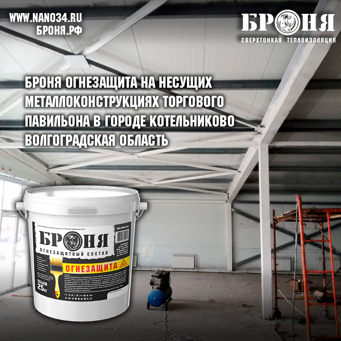 Good day dear subscribers! In today's publication, we would like to share with you another application of our fire retardant coating - Bronya Fire Protection in the premises of a trade pavilion in Kotelnikovo,