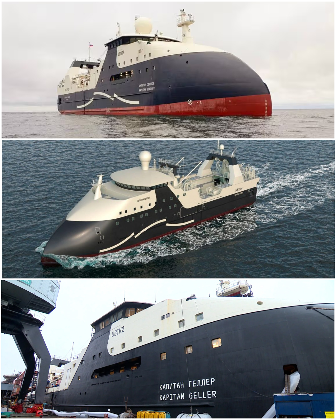 Project 170701 is a series of 10 trawler‑processors, including "Captain Sokolov", "Captain Geller", "Captain Abakumov", "Captain Pyashchikov", "Captain Korotich", "Captain Portnov", and others. Some have already been successfully launched and delivered to the customer, while others are still under construction at Severnaya Verf Shipyard for the Norebo fishing group. These are ultra‑modern vessels with a unique Enduro Bow architecture, which significantly improves seaworthiness and increases working space on board. The onboard factories are designed for zero‑waste processing of up to 150 tons of fish per day.