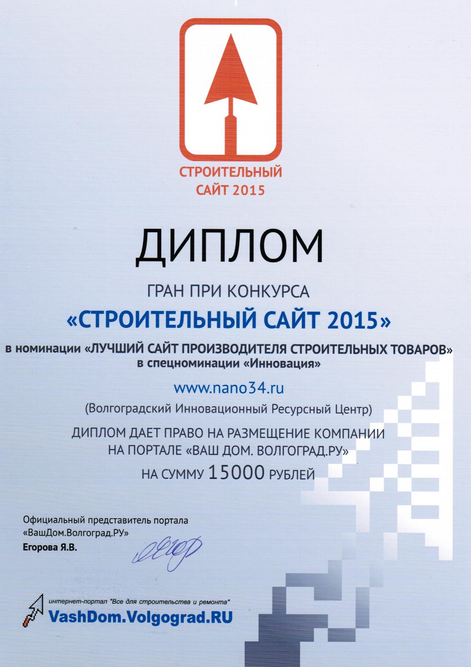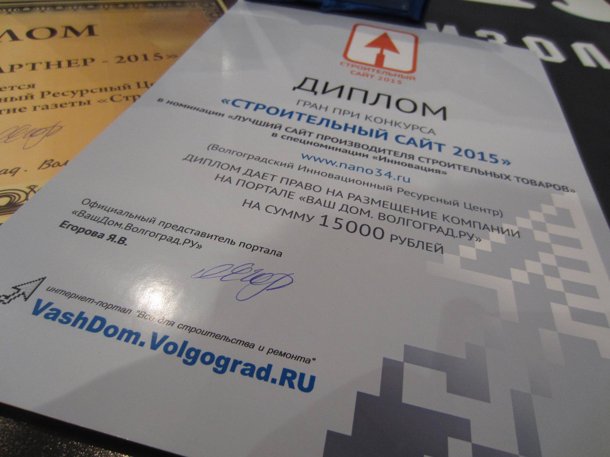 ГК ВИРЦ Броня на награждении финалистов конкурса сайтов Строительный сайт 2015