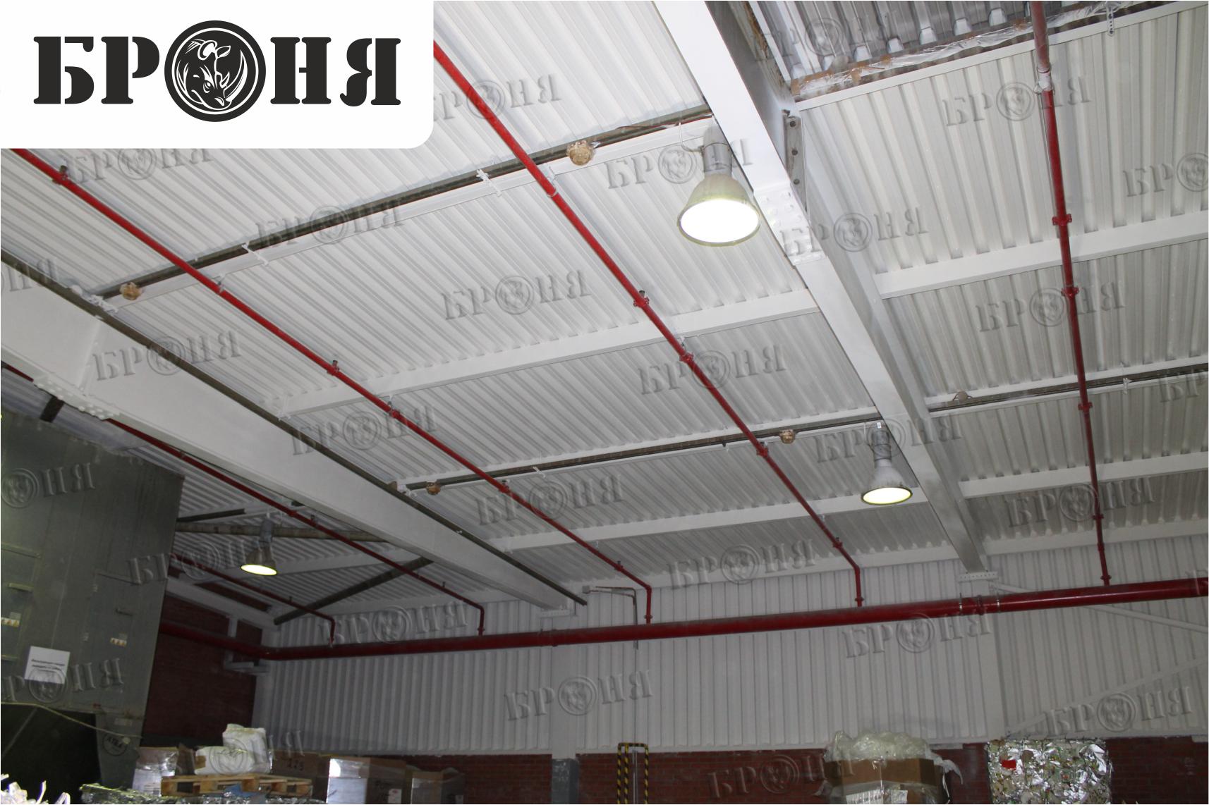 На всей внутренней площади стен и потолка решалась проблема образования конденсата на поверхности кровельного профлиста. При отрицательных температурах на поверхности образовывался конденсат, а затем превращался в лёд. При потеплении, лед таял, вода стекала на пол и снова замерзала, что очень мешало передвижению вилочных погрузчиков и рабочего персонала по территории склада.