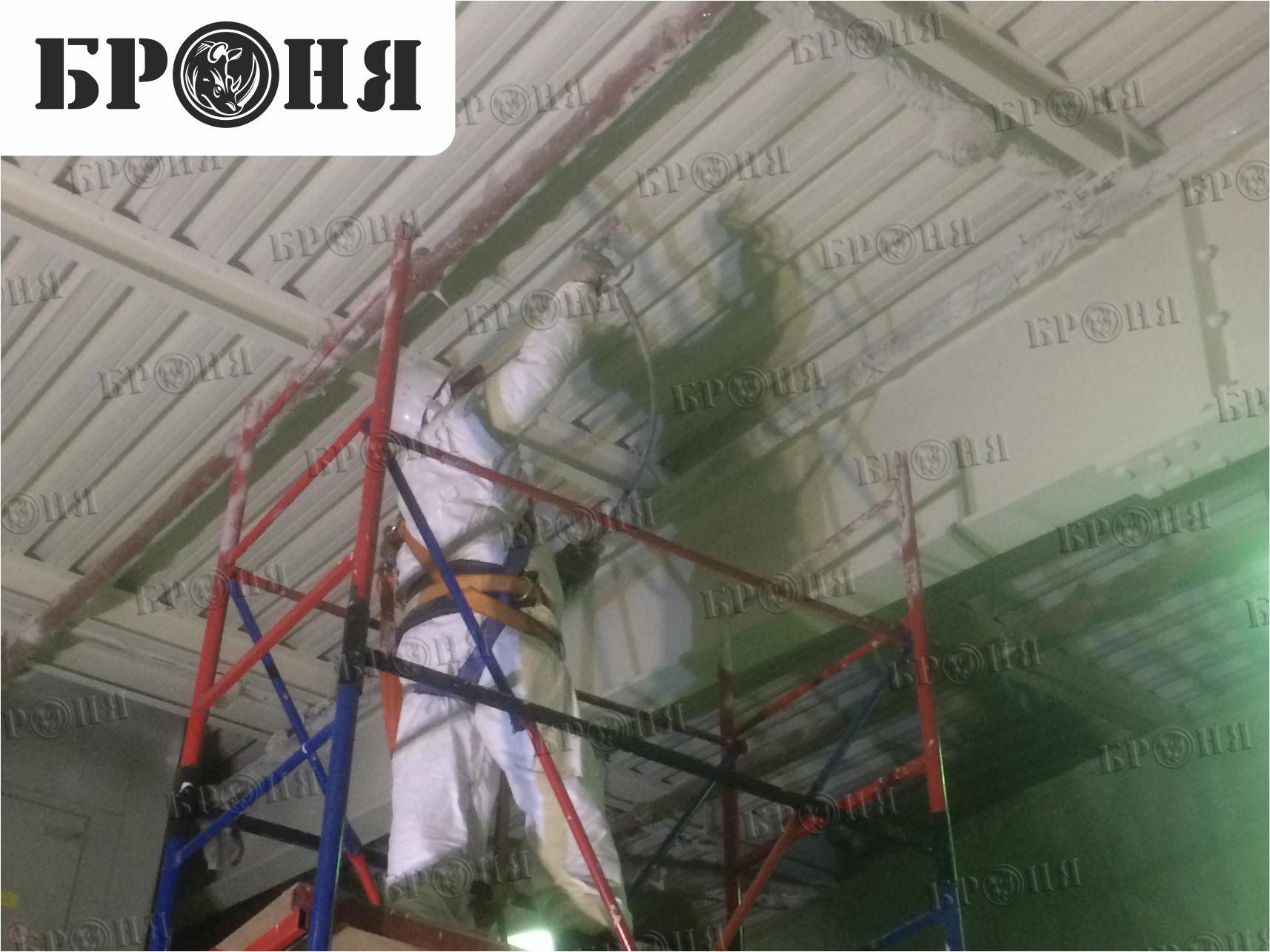 С конца декабря 2017 по начало февраля 2018 года было нанесена Броня Норд при помощи безвоздушного аппарата Graco. После выполнения работ по нанесению материала Броня Норд общей толщиной покрытия 3 мм, проблема была полностью решена.