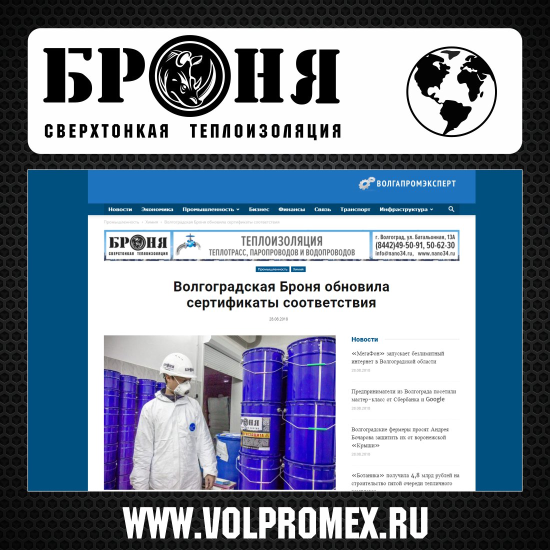 Представляем вам статью о том, что ГК ВИРЦ Броня получил обновленные сертификаты соответствия требованиям нормативных документов на Жидкие керамические Теплоизоляционные материалы серии Броня на авторитетном интернет-ресурсе ВолгаПромЭксперт