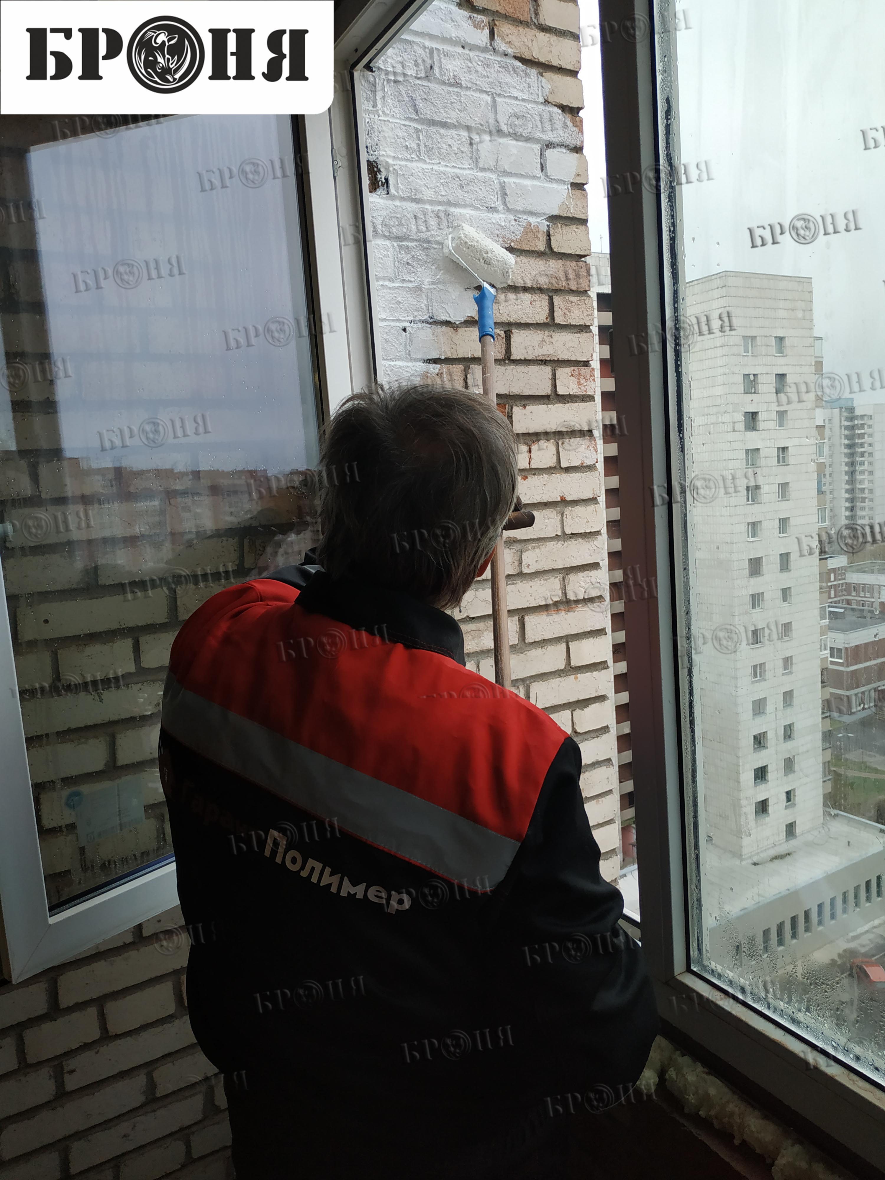 Представляем вашему вниманию фото и видео отчет об утеплении балкона квартиры и фасада многоэтажного дома по адресу Морская набережная 33 г. Санкт-Петербург. На торцевых участках фасада осыпалась кладка, была нанесена Броня Акваблок Эффект в два слоя, финишный слой был заколлерован. Стены, потолок, и пол балкона был утеплен с помощью Броня Фасад.