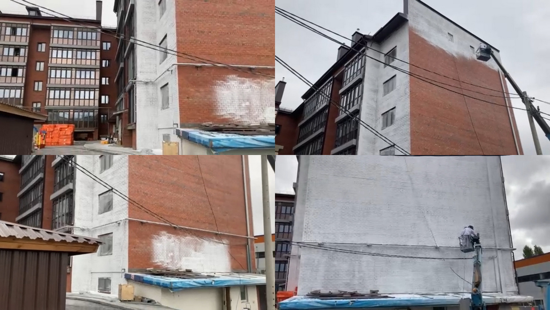 Друзья, представляем вам фото видео отчет о применении ЖКТМ Броня Фасад на стенах жилого, многоквартирного дома, г.Кыштым, 90 км от Челябинска.