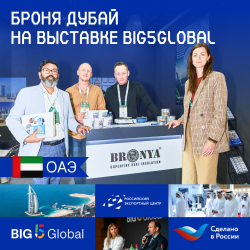 С 26 по 29 ноября компания Броня Дубай успешно представила свои инновационные не горючие теплоизоляционные материалы на крупнейшей строительной выставке Ближнего Востока – BIG5 GLOBAL 2024 в Дубае. В рамках российской национальной экспозиции Made in Russia, организованной при поддержке Российского экспортного центра (РЭЦ), Броня продемонстрировала высокоэффективные и экологичные решения, подтвержденные многочисленными сертификатами и успешными международными проектами. Выставка, традиционно собирающая ведущих игроков мировой строительной индустрии, предоставила Броня отличную возможность укрепить свои позиции на рынке Ближнего Востока и Северной Африки. Выражаем огромную благодарность РЭЦ за помощь в организации нашего участия.
