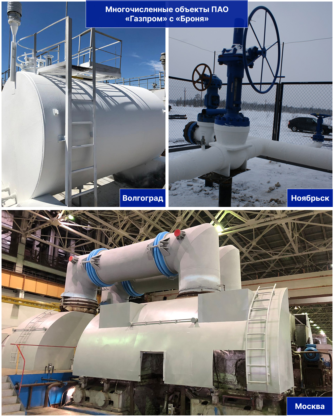 Выступление в центральном офисе «Газпрома» — самом северном небоскребе в мире и высочайшем здании Европы (462 метра) — стало ярким подтверждением востребованности наших технологий. Продукция «Броня» активно используется в рамках программы импортозамещения. Кроме того, наша компания обладает богатым опытом работы с ведущими предприятиями нефтегазовой отрасли (включая ПАО «Газпромнефть»), а надежность продукции подтверждена десятками лабораторных заключений, включая добровольную сертификацию «Газпромсерт» и «ГазпромЭнергоЭксперт».