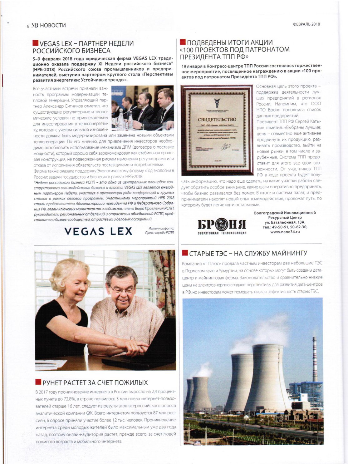 Комплексное размещение Теплоизоляции Броня в журнале National Business (февраль 2018)