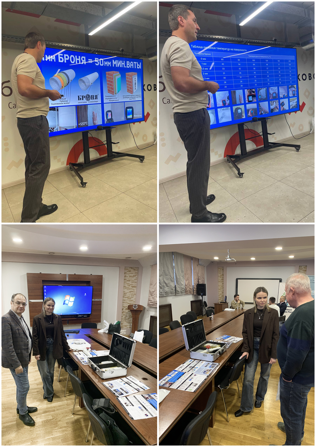 • Презентация продукции «Броня». Представители компании продемонстрировали эффективность сверхтонкой теплоизоляции, подчеркнув уникальные свойства материала: 1 мм покрытия «Броня» по теплофизическим свойствам способен заменить 50 мм традиционной минеральной ваты. Были представлены наглядные данные по снижению температур на поверхности и запатентованные технологии нанесения.