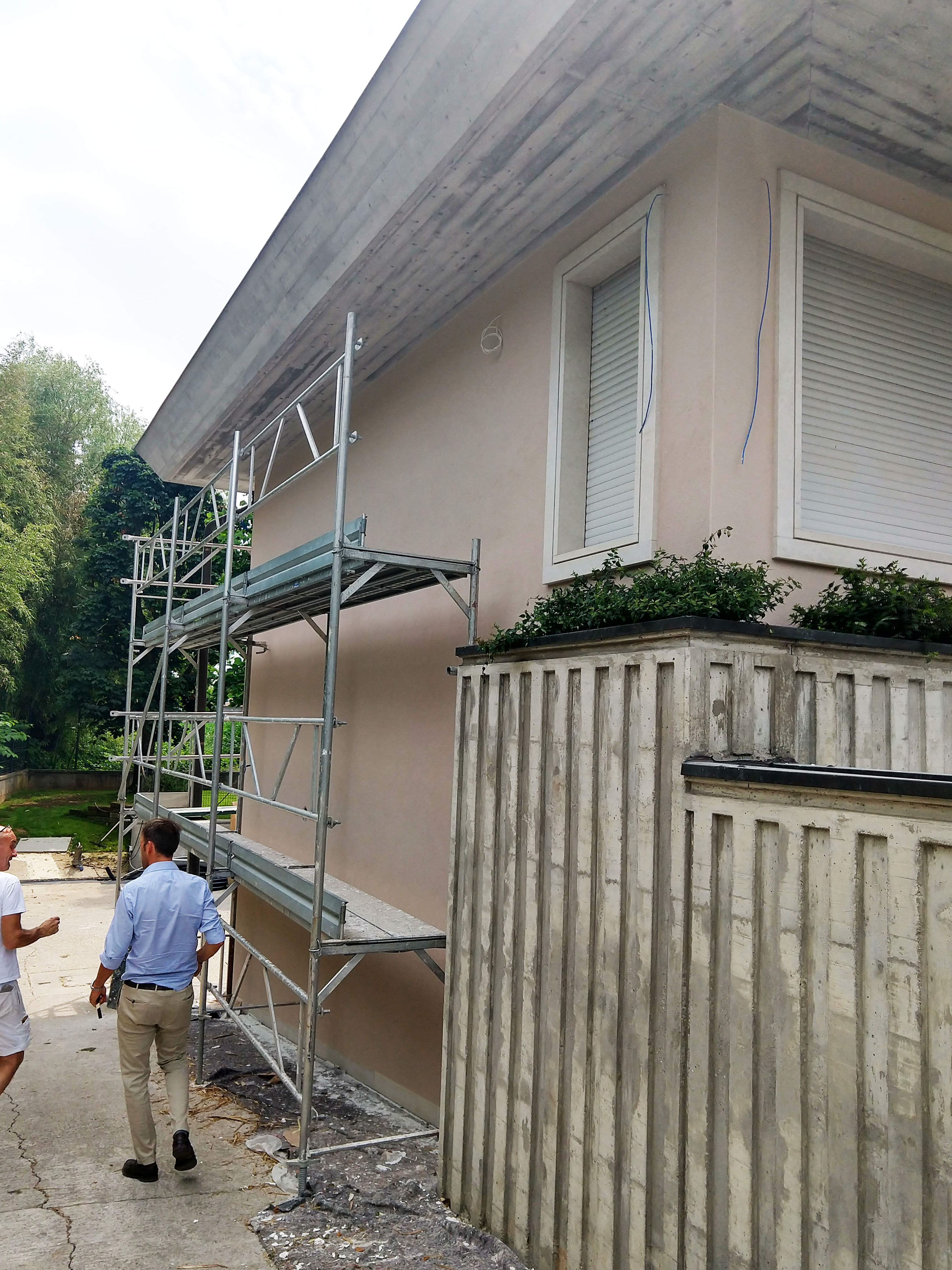 Броня Италия, в рамках глобального проекта по популяризации и внедрения жидкой теплоизоляции Броня в работы по масштабному капитальному ремонту жилых комплексов и исторических зданий представило фото и видео отчет проведенных работ по теплоизоляции фасада крупного двухэтажного таунхауса, одного из объектов глобальных работ на жилом комплексе. Для сохранения тепла, экономии энергозатрат на отопление и кондиционирование в теплое время года, был нанесен материал Броня Фасад в несколько слоев общей толщиной в 1.5 мм. последний, финишный слой был заколерован согласно заранее утвержденному дизайну проекта. Материал наносился при помощи обычной малярной кисти. Сложно переоценить превосходный результат и преображение внешнего вида объекта, материал Броня вновь подтвердил свои исключительные теплофизические свойства.