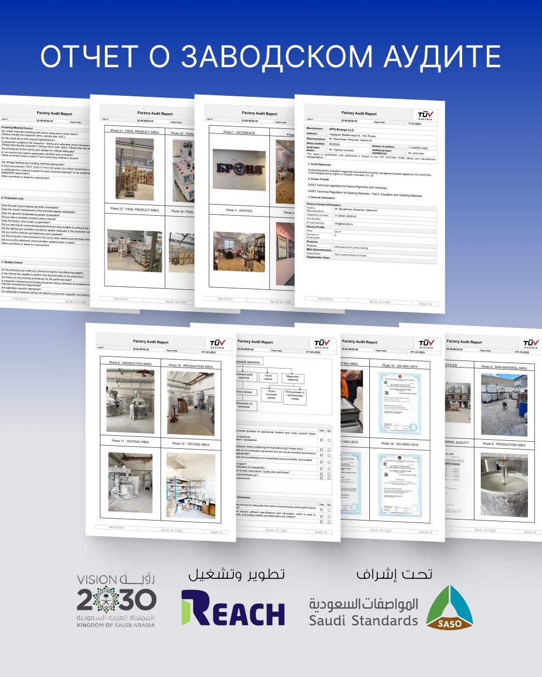 Полученный сертификат TÜV AUSTRIA TURK , филиалом самой авторитетной системы в Саудовской Аравии, дает нам легитимное право на поставку и применение наших покрытий на оборудовании, трубопроводах и других поверхностях на объектах крупнейших игроков нефтегазовой отрасли , собственно инициация как необходимость была от ведущего холдинга в сигменте на ближнем востоке , от компании Saudi Aramco.