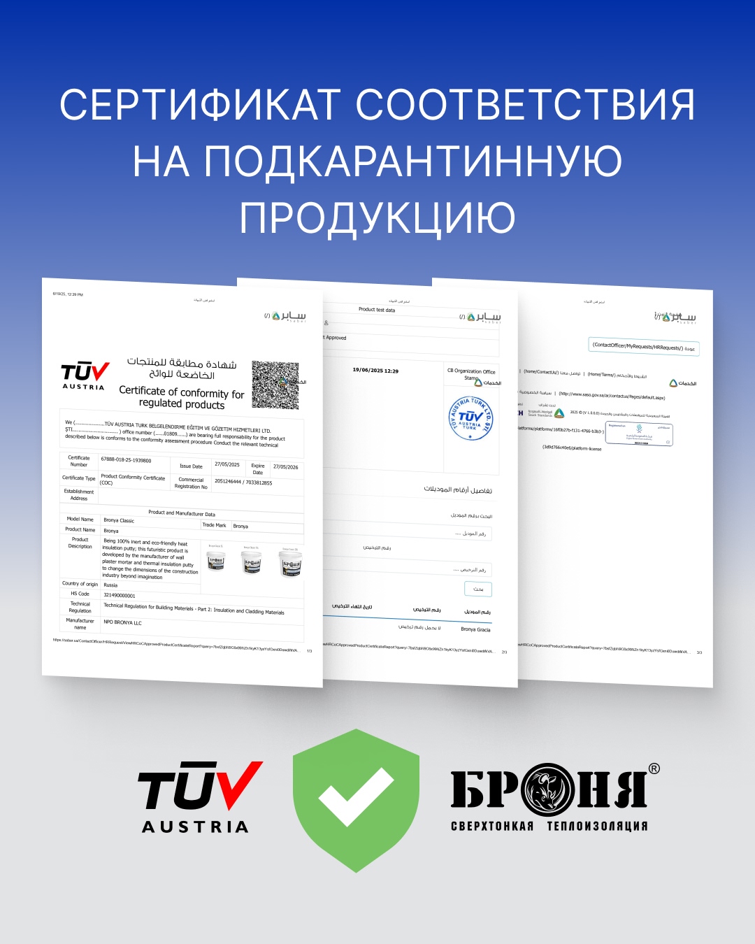 С гордостью сообщаем о завершении сложнейшего процесса аккредитации и получении сертификата соответствия от международного органа TÜV для продукции «Броня» на рынке Саудовской Аравии.