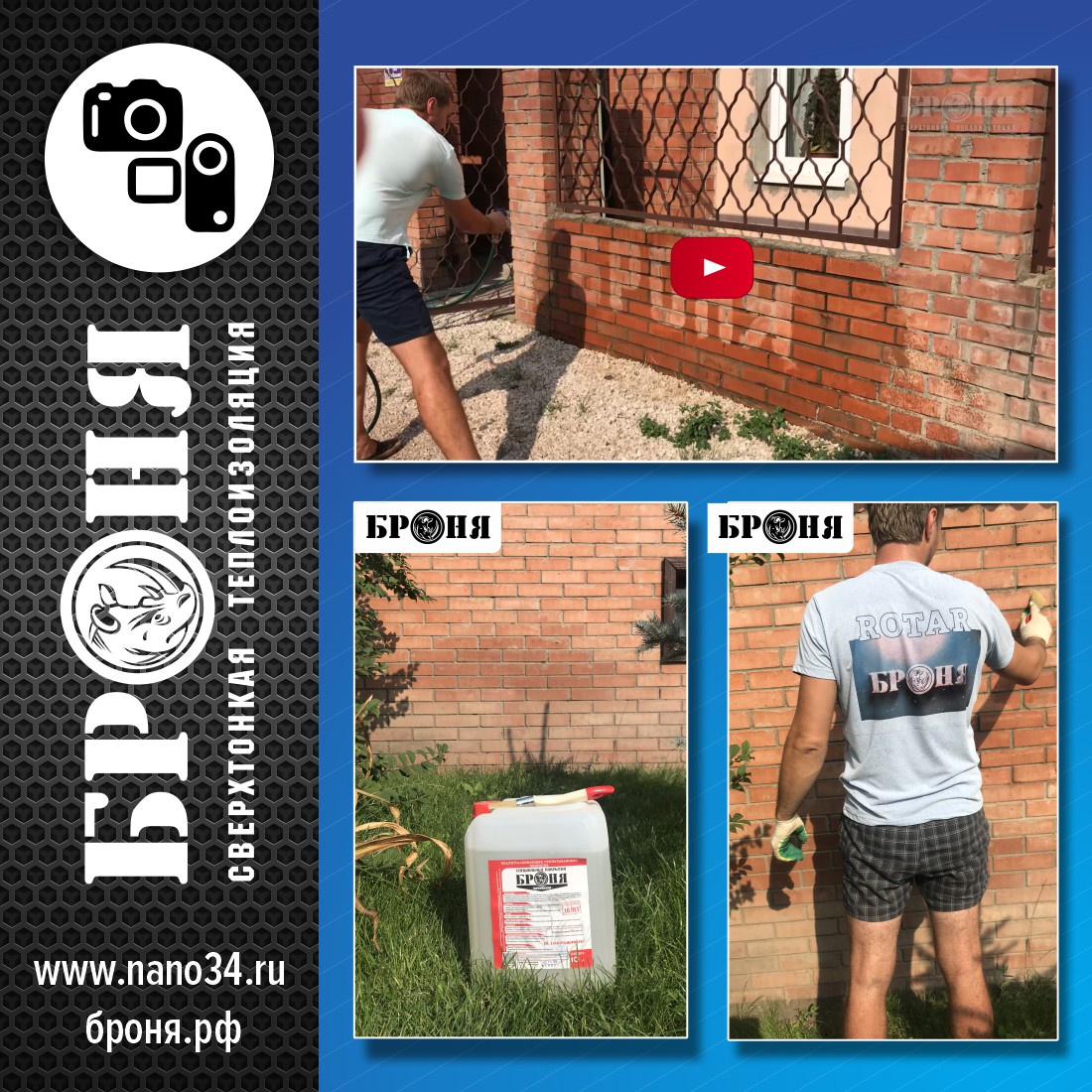 Представляем вам фото и видеоотчет о применении Гидрофобизатора Броня для защиты от впитывания влаги кирпичного фасада бани в частном домовладении в г. Тольятти Самарской области. На фасад здания был нанесен Гидрофобизатор Броня с помощью обычной малярной кисти. В результате достигнут "эффект лотоса" - влага не впитывается в кирпич, что предохранит его от разрушения.