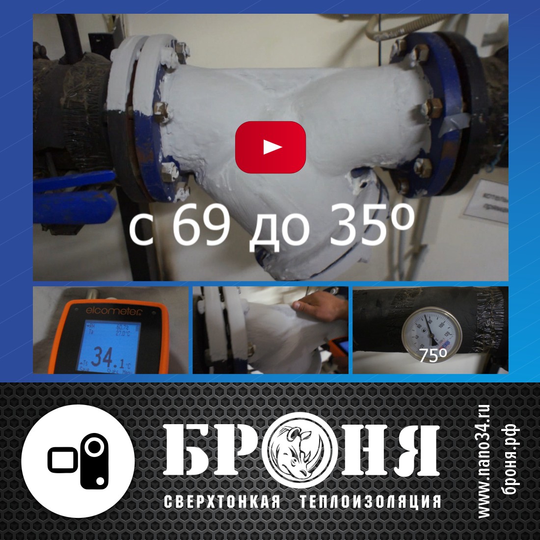 Представляем видеоотчет о применении жидкой керамической Теплоизоляции Броня Классик в теплопункте ТРЦ "Фантастика" г. Нижний Новгород. Для снижения теплопотерь, температуры поверхности трубопроводов горячего водоснабжения ниже требуемой по СНИП была применена Теплоизоляция Броня Классик толщиной слоя 2 мм. После нанесения температура поверхности снизилась в два раза и стала безопасной от ожогов для обслуживающего персонала. Данный результат был задокументирован и в ближайшее время будет опубликовано заключение по результатам испытаний.