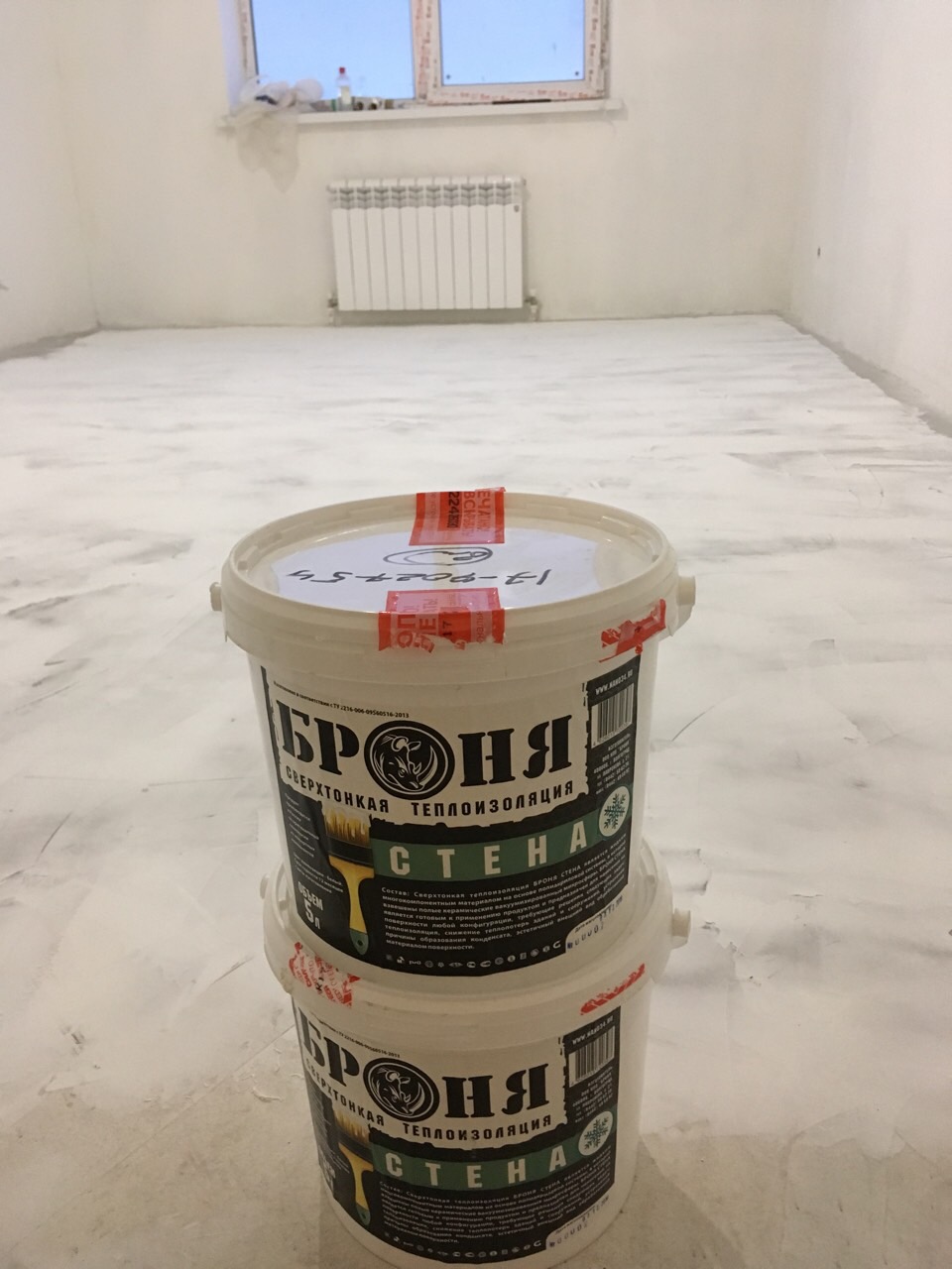Перед нанесением теплоизоляции поверхность обеспылили и покрыли грунтом глубоко проникновения Броня Универсал. Затем нанесли один слой в 1 мм теплоизоляцию Броня Стена и после полного высыхания нанесли один слой в 1 мм Броня Лайт.