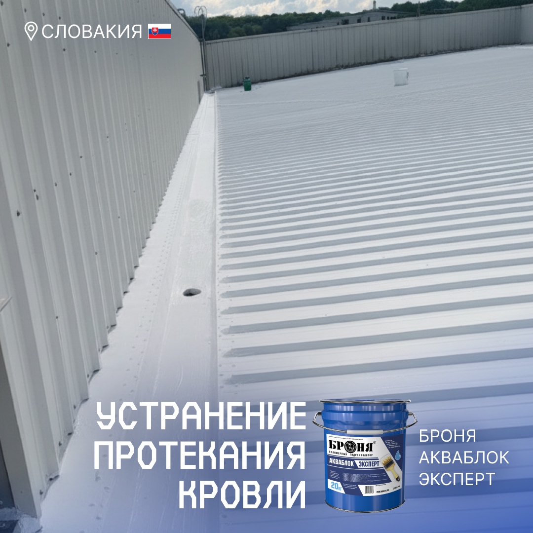 Протечка полностью устранена. Создана бесшовная, эластичная и долговечная гидроизоляционная мембрана (заплатка), которая надежно защищает самый сложный узел кровли. Ремонт выполнен быстро и без необходимости замены больших участков кровельного покрытия, а в портфолио нашего дилера в Словакии появился еще один объект, укрепивший его репутацию и способствующий развитию «сарафанного радио».