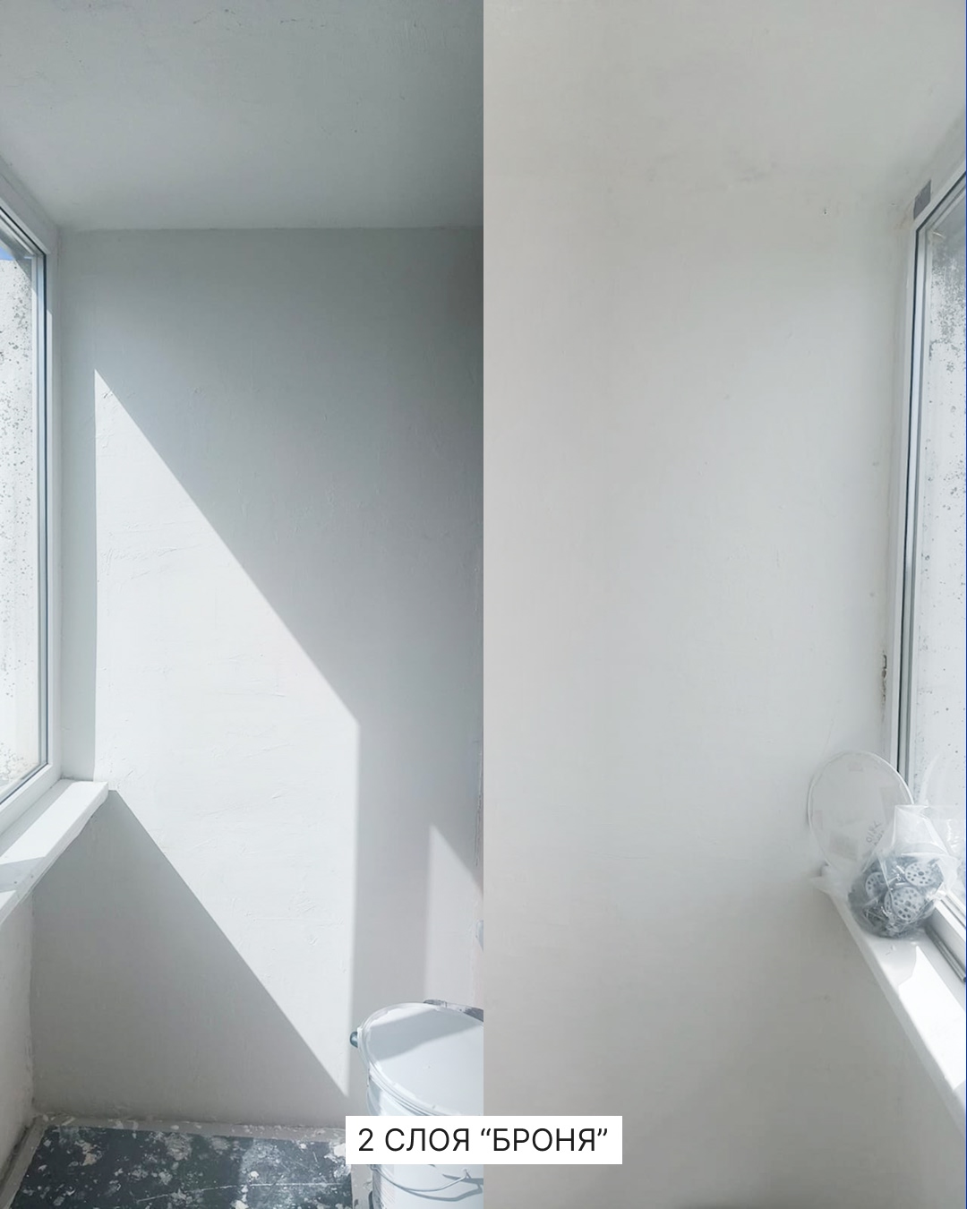 Было принято решение о полном демонтаже старого неэффективного утеплителя. После тщательной зачистки поверхностей от плесени, стены были обработаны составом «Грунт Броня Универсал». Затем была нанесена теплоизоляция «Броня Классик» послойно по 0,5 мм с межслойной сушкой 24 часа. Учитывая суровый северный климат региона (температура зимой до -36°C), общая толщина покрытия была сформирована в 2,5 мм. В завершение был нанесен финишный декоративный слой.