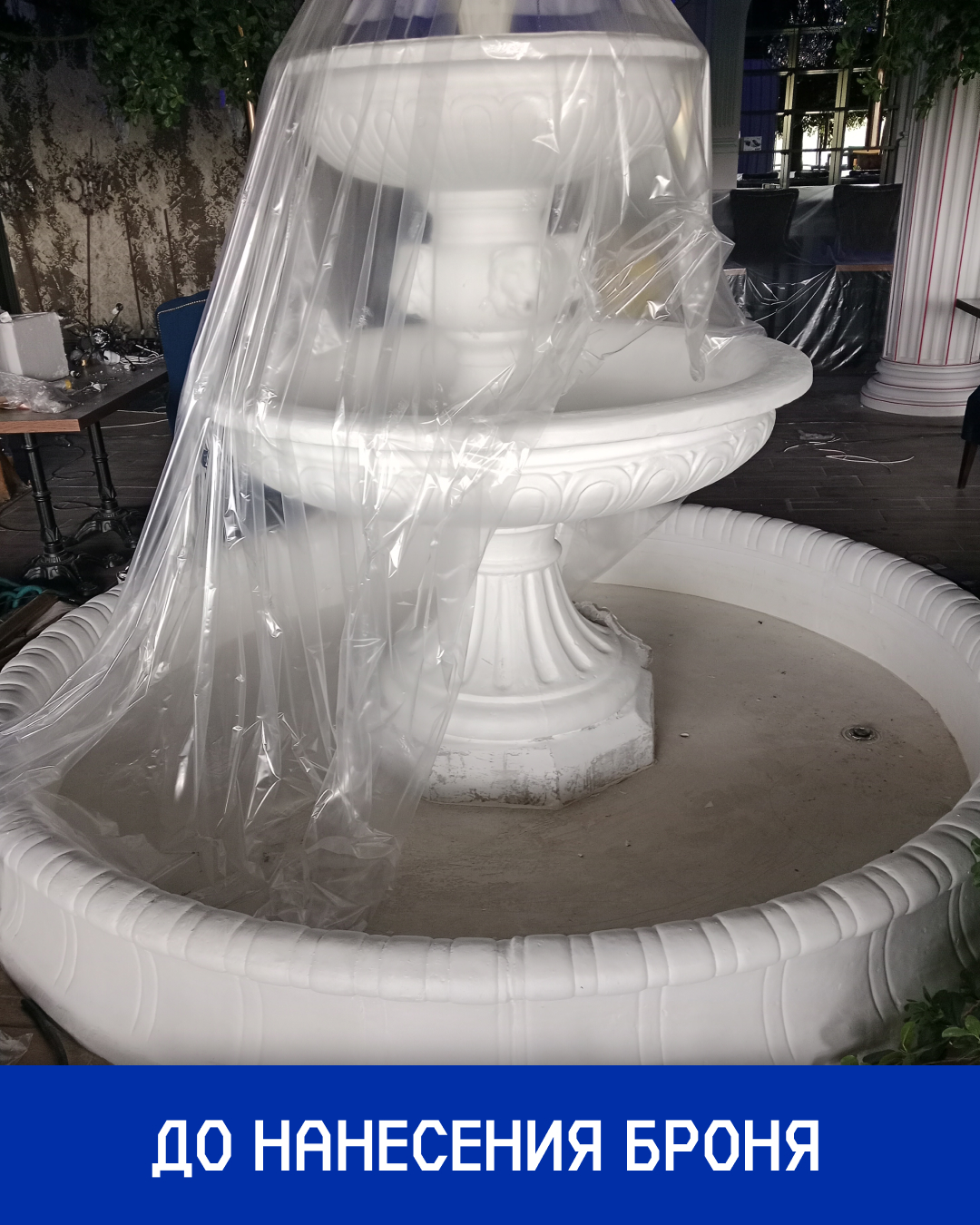 Результат: С покрытием «Броня» удалось успешно решить поставленные задачи. Во-первых, создан надежный барьер, предотвращающий разрушение бетонных конструкций из-за проникновения воды. Во-вторых, как видно на финальных снимках, фонтану придали обновленный, свежий и привлекательный внешний вид.