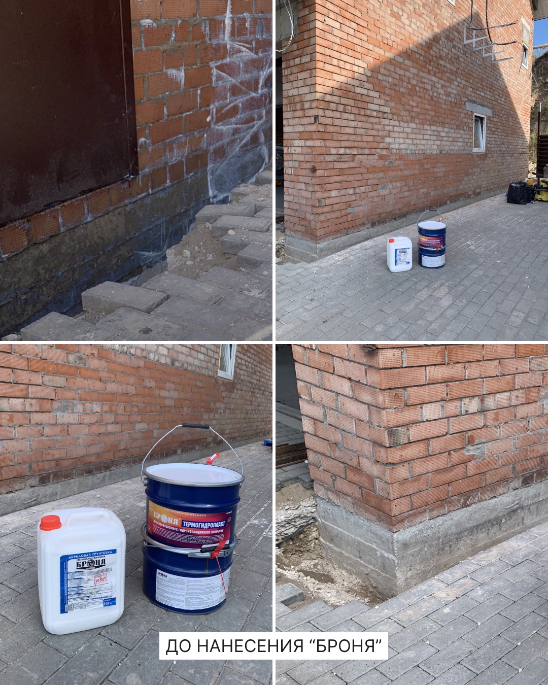 Применение системы из двух продуктов позволило добиться комплексной и долговечной защиты. Сначала «Броня Универсал Эластик» выступил в качестве эластичной гидроизоляционной грунтовки, создав прочную и высокоадгезионную подложку. Затем два слоя «Броня ТермоГидроПласт» сформировали на поверхности основную единую, эластичную и бесшовную мембрану. Это финишное покрытие надежно защищает цоколь от промерзания, сохраняя тепло внутри помещения, и одновременно является мощным гидроизоляционным барьером, полностью исключающим проникновение влаги.