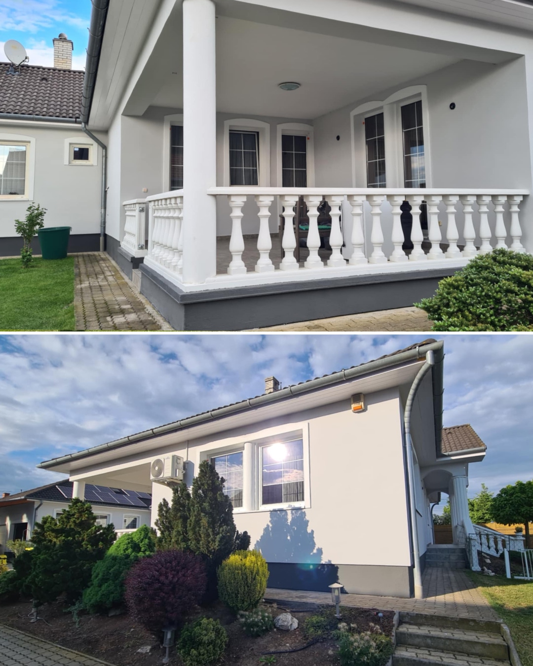 Как и обещали, продолжаем делиться обширным архивом отчетов от наших партнеров «Броня Венгрия». Сегодня представляем еще один стильный частный коттедж, утепленный с помощью нашей негорючей фасадной теплоизоляции.