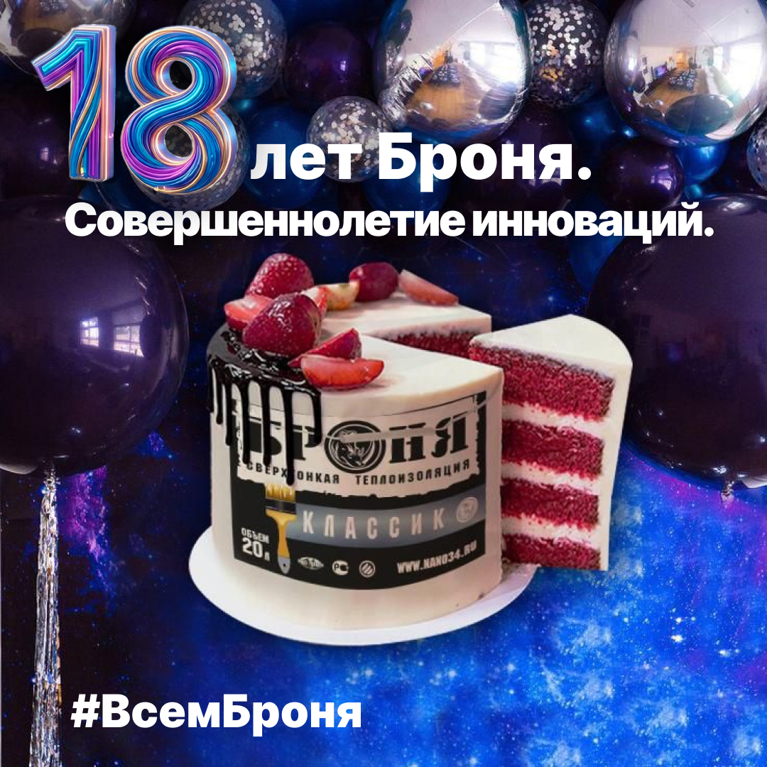 Совершеннолетие «Броня» — это не просто дата, а точка нашего понимания и самоосознания для дальнейшего глобального масштабирования. За 18 лет мы прошли путь от смелого стартапа до высокотехнологичного предприятия — настоящего конвейера прорывных инноваций и безоговорочного законодателя стандартов в сегменте сверхтонкой теплоизоляции. Нас знает и выбирает весь мир