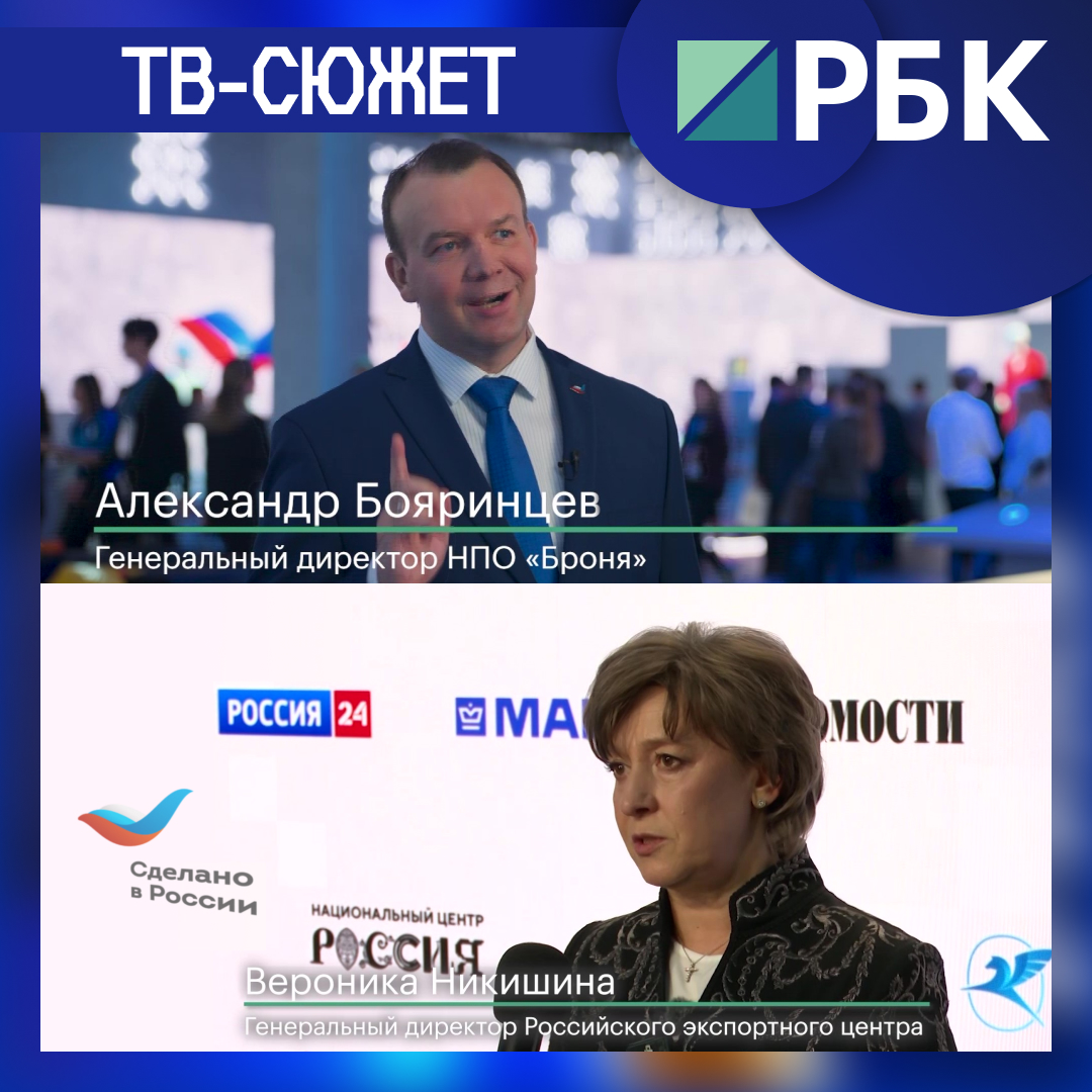 Телеканал РБК взял у генерального директора «Броня» интервью сразу после получения призов за победы на международном форуме «Сделано в России». Это стало уже доброй традицией, напомним: в этом году мы в пятый раз стали призерами федерального этапа конкурса «Экспортер года» и третий раз подряд завоевали сразу два первых места , и в прошлом году , после награждения корреспонденты телеканала РБК попросили о комментариях нашего руководителя.